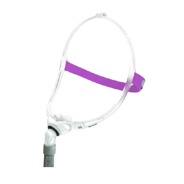 • Mascarilla con sistema de almohadillas nasales especialmente diseñada para mujer.